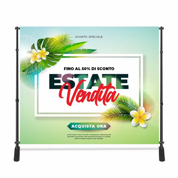 È possibile scegliere tra 3 diversi tipi di asta e 2 diversi tipi di supporto per il vostro striscione regolabile. Questo design facile da installare consente un posizionamento rapido e semplice in occasione di fiere, conferenze, presentazioni, incontri d'affari e molto altro ancora!
