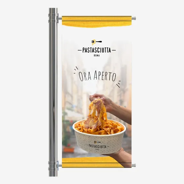 Applicazione di banner free standing per esterni.
