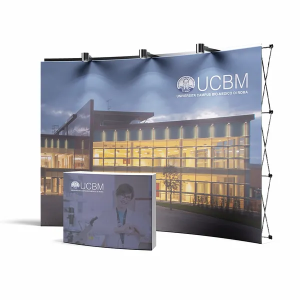 Grazie al loro branding di grande impatto, gli espositori pop-up dritti sono ideali per creare grandi sfondi con immagini e testi in occasione di mostre, fiere al coperto o eventi mediatici. Questo banner è relativamente facile da usare e da installare in qualsiasi momento grazie alla sua leggerezza.