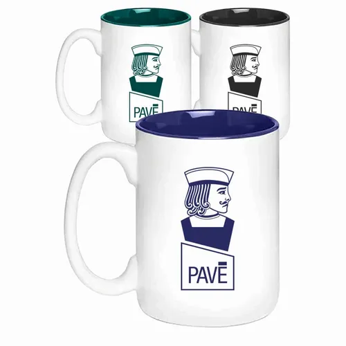 Capacità e materiale: 444 mL | Stoneware Area dell'impronta: 64 mm L x 64 cm A Altezza tazza: 11 cm Larghezza tazza: 12 cm Bordo tazza: 8 cm